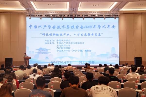 8月27—28日,由中國水產學會主辦,中國水產學會淡水養殖分會、上海海洋大學、內江師范學院和中國水產學會《水產學報》編輯部共同承辦的中國水產學會淡水養殖分會2025年學術年會在河北邯鄲召開。來自全國60余家高校和科研院所的近200名專家學者和青年學生參加會議。中國水產學會淡水養殖分會主任委員李家樂教授,中國水產學會秘書處相關負責同志出席會議并致辭。開幕式由中國水產學會淡水養殖分會副主任委員戈賢平研究員主持。