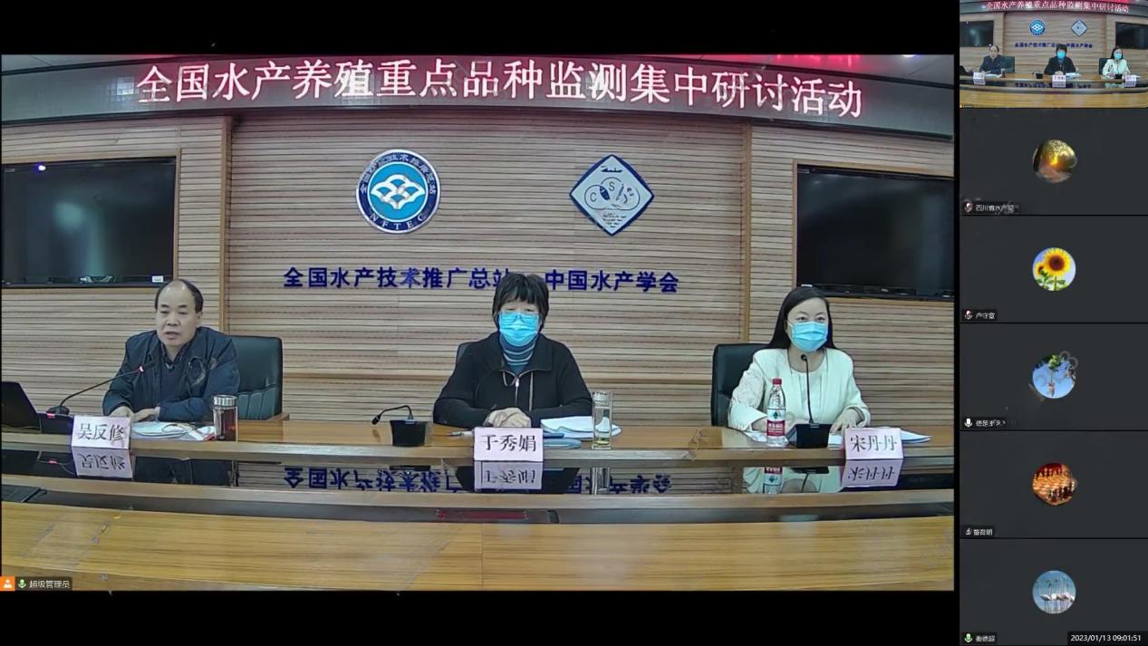1月13日,全國水產(chǎn)技術(shù)推廣總站 中國水產(chǎn)學(xué)會(以下簡稱“總站學(xué)會”)主辦的水產(chǎn)養(yǎng)殖重點品種監(jiān)測集中研討活動在線上舉辦。舉辦此次集中研討活動的目的是宣傳貫徹水產(chǎn)養(yǎng)殖重點品種監(jiān)測文件,促進各地學(xué)習(xí)和把握水產(chǎn)養(yǎng)殖重點品種監(jiān)測方法,切實做好數(shù)據(jù)填報和審核工作,為2023年全面啟動開展水產(chǎn)養(yǎng)殖重點品種監(jiān)測打好基礎(chǔ),為水產(chǎn)品穩(wěn)產(chǎn)保供做好支撐。
