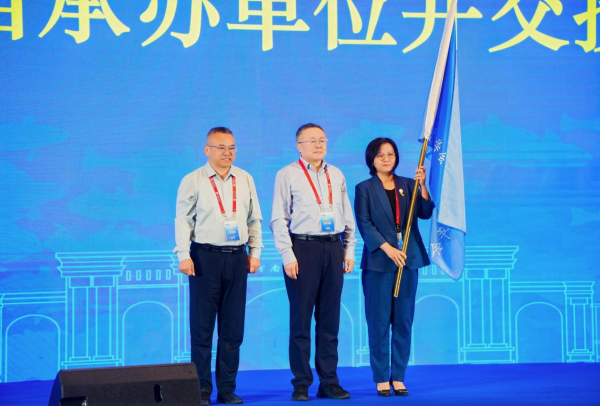 開幕式上,海南熱帶海洋學院作為2026年中國水產學會青年學術年會承辦單位,由海南熱帶海洋學院黨委常委、組織部部長林麗菲從包振民理事長手中接過會旗,并代表承辦單位向廣大青年水產科技工作者和青年學子發出誠摯邀請,明年在碧海藍天的海南三亞相聚,繼續暢談交流水產領域創新成果。